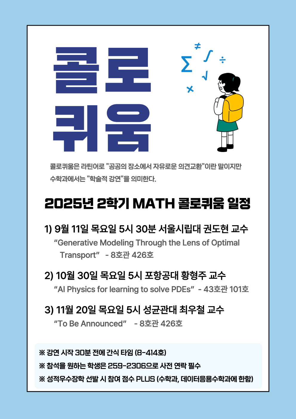| 2025년 2학기 첫번째 MATH 콜로퀴움 일정 안내 | |||||