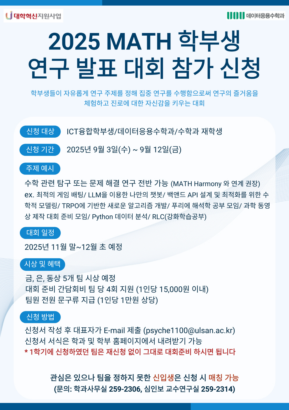 | 2025 MATH 학부생 연구 발표 대회 참가 신청 | |||||